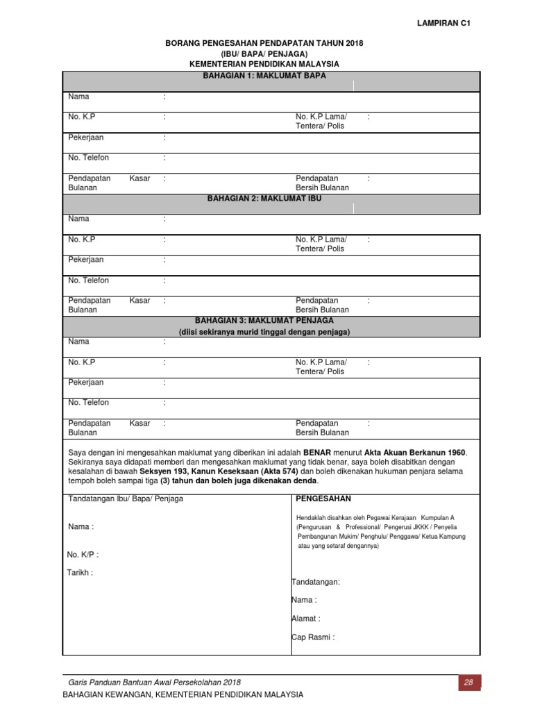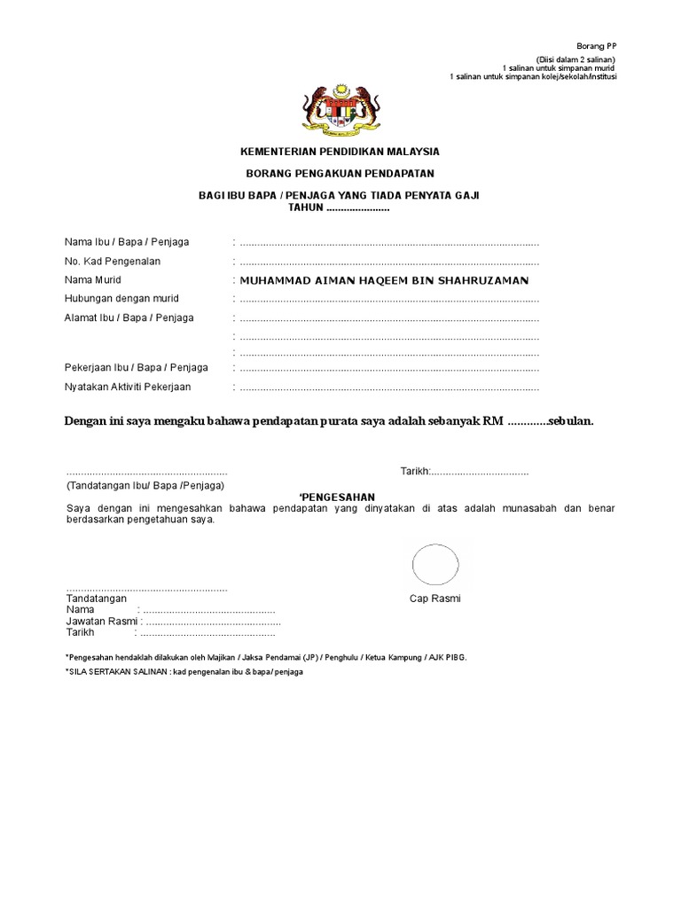 Surat Akuan Pendapatan Ibu Bapa Pdf